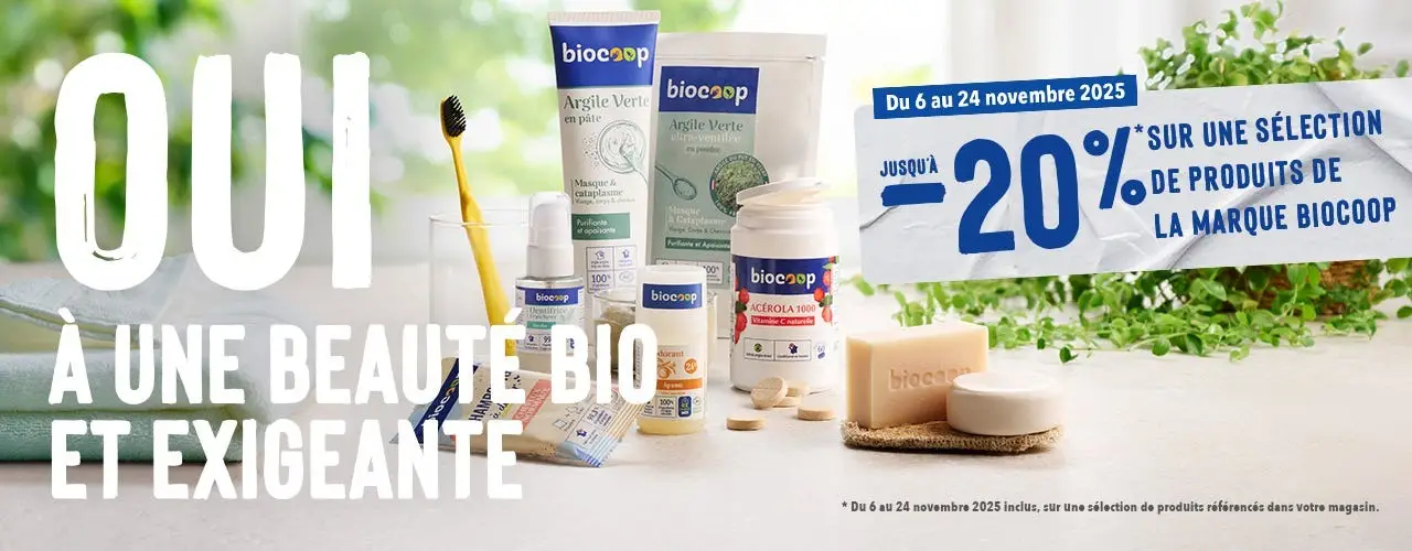 Pas non plus facile de décrypter la composition des produits de ce rayon. Eh bien chez Biocoop vous trouverez + de 95 % d’ingrédients d’origine naturelle dans nos produits d‘hygiène et beauté ! Disons Oui à la beauté bio et sans artifice ! Cerise sur le gâteau : tout comme les produits alimentaires, nous privilégions l’origine France : 99 % de nos produits y sont fabriqués. Bientôt dans votre salle de bain retrouvez : du déodorant, et du savon, composés à 100 % ingrédients d’origine naturelle ; du shampoing à diluer à la composition courte et simple ; notre dentifrice fraicheur menthe formulé sans dioxyde de titane et sans silice.