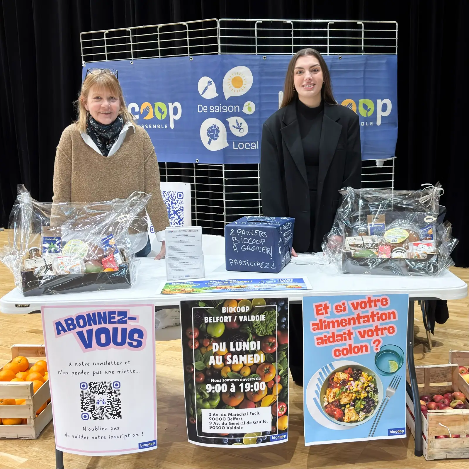 Le mardi 17 mars dernier, la Biocoop Le Grenier Vert était fière de s'associer à la Ligue contre le cancer à l'occasion du Côlon Tour, qui faisait étape à Voujeaucourt, à la salle de la Cray.