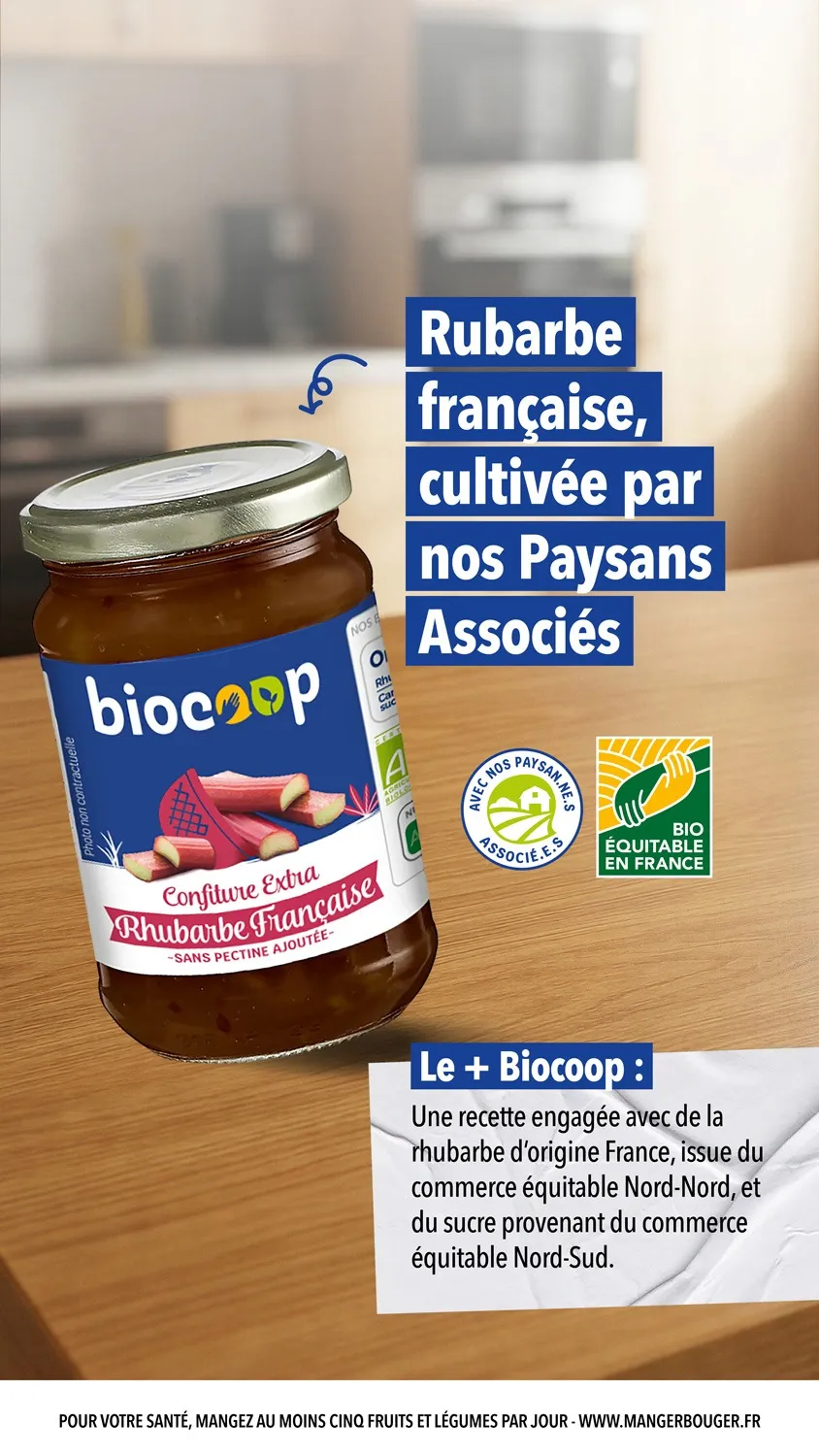 Pour que nos confitures aient encore plus le goût de la maison, les fruits sont 100% origine France. C’est le cas de la rhubarbe qui nous vient du groupement de producteurs de fruits et légumes Norabio, une coopérative 100 % bio de 140 fermes, située dans les Hauts-De-France.