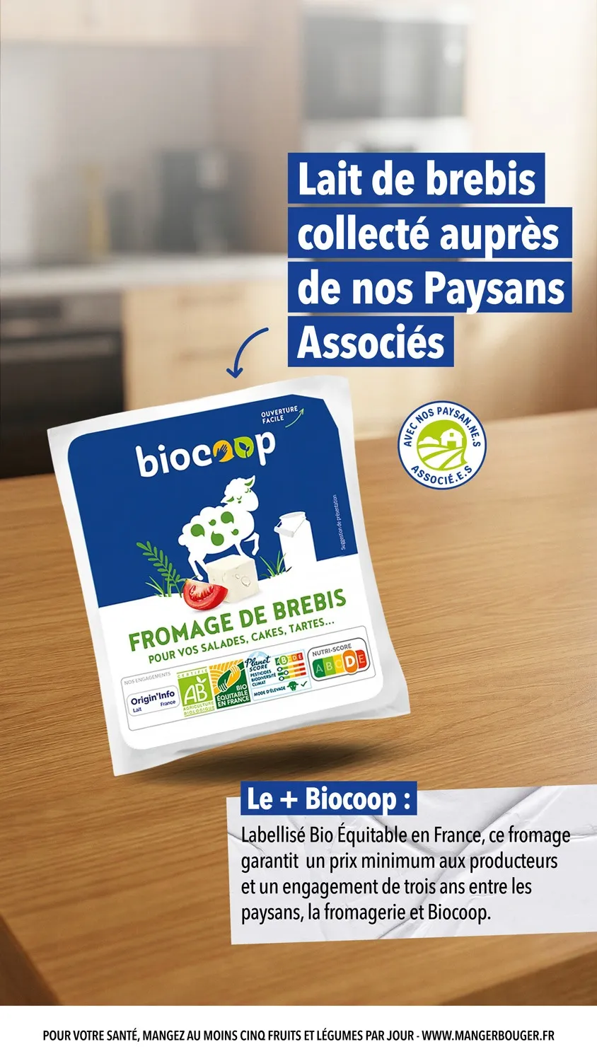 Son label Bio Equitable en France garantit un commerce équitable entre les paysan.ne.s, la fromagerie et Biocoop avec un prix minimum garanti aux producteurs de lait et un engagement d’achat pour 3 ans minimum.